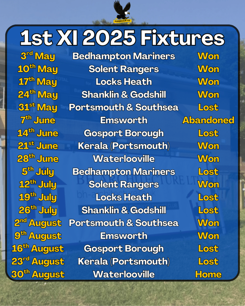 31st May – Portsmouth and Southsea CC 2nd XI – Lost